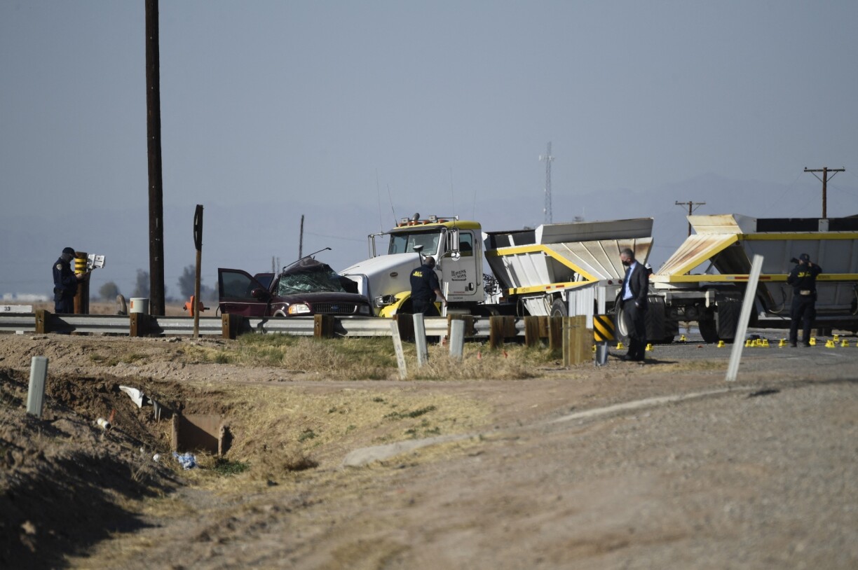 L’accident est survenu vers 06h15 non loin de la frontière avec le Mexique, dans une zone agricole où de nombreux travailleurs transitent chaque jour. Il a impliqué un poids lourd tractant deux remorques qui a percuté un gros SUV Ford modèle Expedition qui traversait une route nationale au niveau d’un stop.