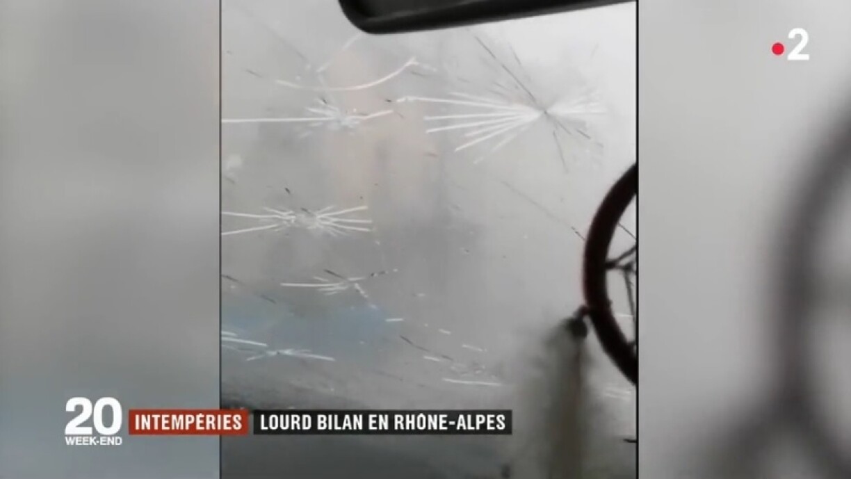 “Ça a cassé le pare-brise” s’exclame-t-il dans la vidéo, paniqué par la force des impacts. Pendant dix minutes, il est resté dans son véhicule, impuissant face à des grêlons de la taille d’une balle de golf, quand ce n’était pas plus.