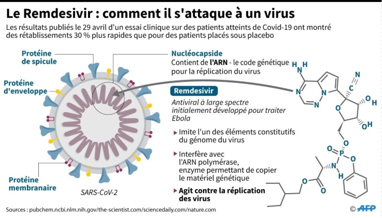 Médicament expérimental initialement développé pour soigner les malades de la fièvre hémorragique Ebola, mais jamais approuvé contre aucune maladie, le remdesivir est la première thérapie à avoir démontré une certaine efficacité dans un essai aussi grand, plus d’un millier de patients, même si l’effet est considéré comme modeste.
