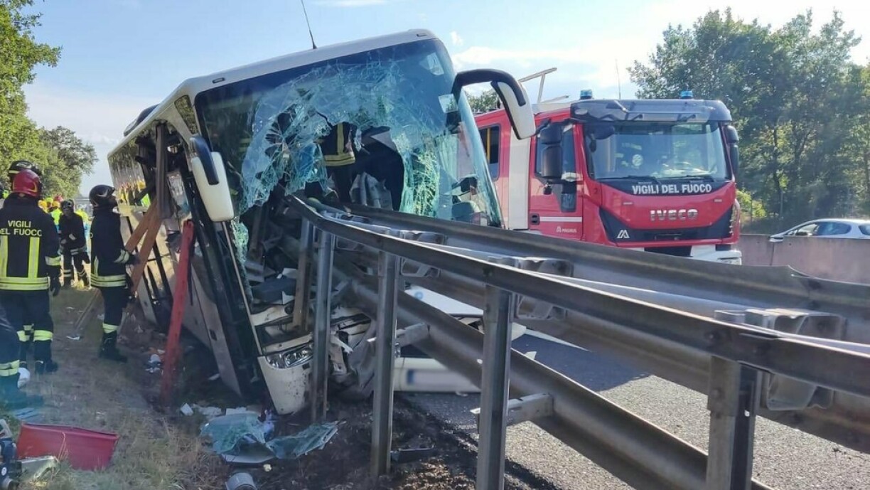 L’accident s’est produit à hauteur de la ville d’Arrezzo impliquant cet autocar avec 25 touristes à bord, selon un post des pompiers sur X. Sur les réseaux sociaux, des images ont montré le bus fracassé contre une glissière de sécurité, son pare-brise démoli.