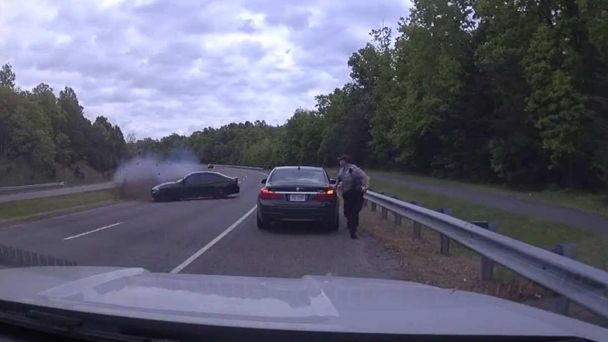 Son chef adjoint a déclaré que l’incident a commencé lorsqu’un agent du commissariat du district de Sully a arrêté une BMW 750 grise qui roulait à près de 120 km/h dans une zone limitée à 80 km/h sur le côté sud de la Fairfax County Parkway. Alors que l’agent s’entretenait avec le conducteur de cette voiture, un jeune homme de 17 ans conduisant une BMW M3 noire sur les voies en direction du nord a perdu le contrôle de son véhicule avant de franchir la berme centrale à toute vitesse.