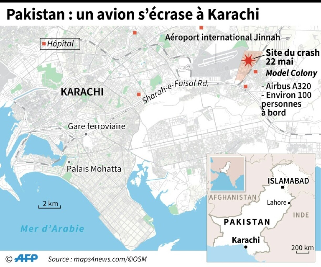 Vendredi, un A320 de la PIA en provenance de Lahore s’est écrasé sur un quartier résidentiel après avoir subi une défaillance technique, alors qu’il approchait de l’aéroport de Karachi. Le drame a coûté la vie à 97 des 99 personnes à bord, tuant 97 des 99 personnes à bord, dont huit membres d’équipage. Au sol, seule quatre personnes ont été blessées selon les autorités.