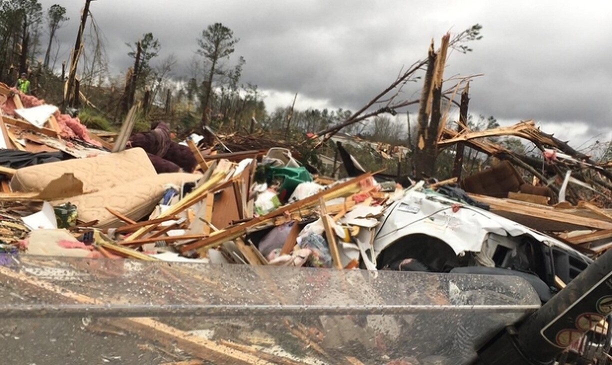 Selon le shérif du comté de Lee, la tornade a parcouru plusieurs kilomètres et provoqué des destructions “catastrophiques” sur une bande d’environ 400 mètres tout le long de sa trajectoire.