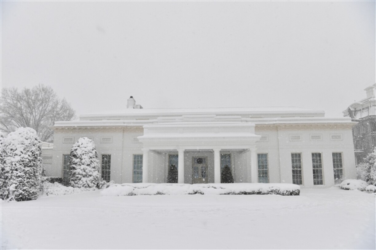 Son avion Air Force One est resté bloqué trente minutes sur le tarmac le temps que le personnel puisse déblayer la neige sur la piste, puis le convoi présidentiel a été fortement ralenti sur son trajet pour rejoindre la Maison Blanche.