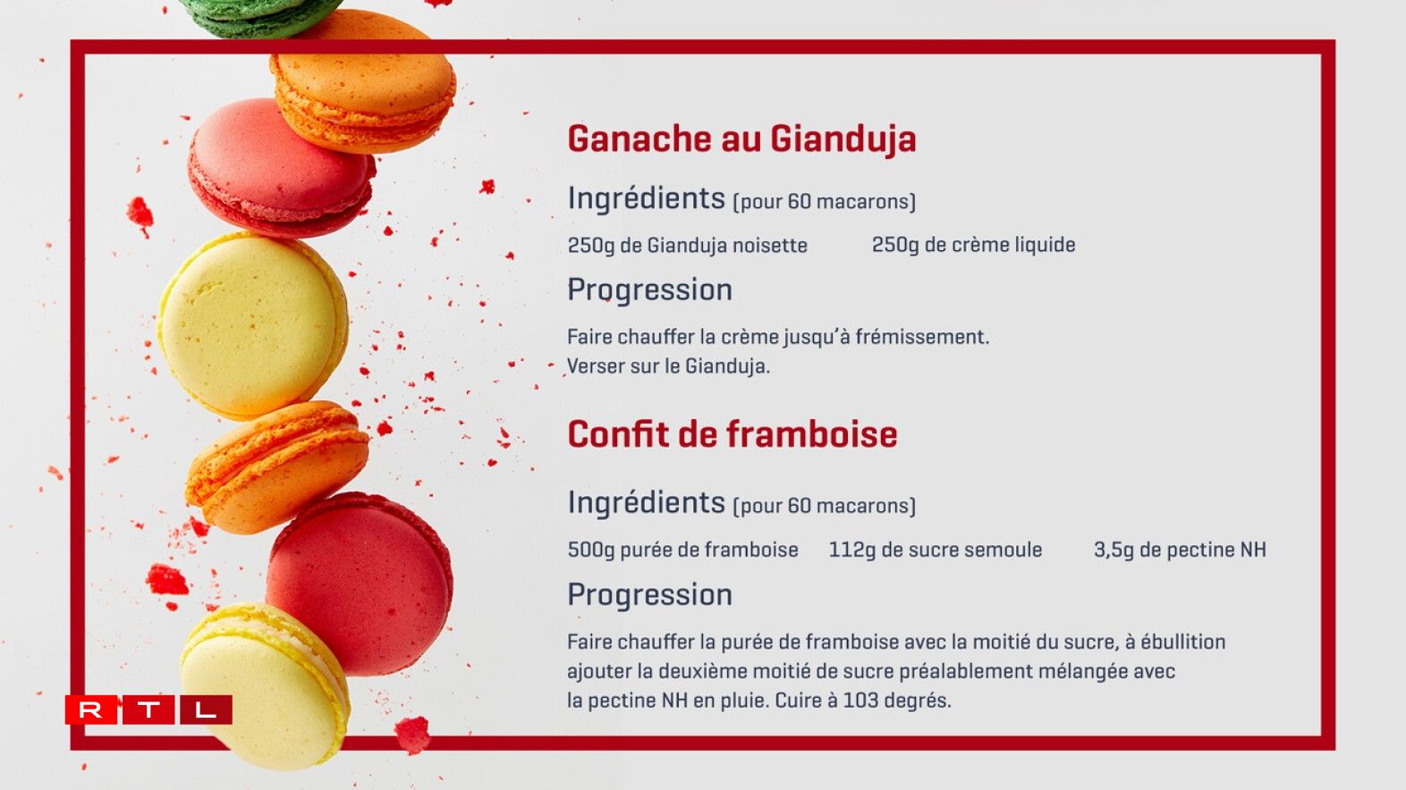 On a d’abord commencé à préparer la première ganache, la plus simple, faite de gianduja et de crème. Il suffit de porter la crème à ébullition et de la verser sur le chocolat qui fond tout seul, puis de mélanger. La deuxième au chocolat et fruit de la passion. Puis le confit de framboise. Rien de sorcier (d’autant plus que les purées de fruits étaient prêtes) mais ça ne m’a pas empêché de poser (beaucoup) de questions (idiotes). “Ça boue pas trop? On met la plaque sur quelle puissance? Mais j’arrête quand de mélanger, en fait?” Heureusement, le chef est très patient. Le temps de réaliser les coques, on a mis nos trois ganaches dans des pochoirs, direction le congélateur durant une bonne heure. Évidemment, on goûte et c’est déjà très bon.