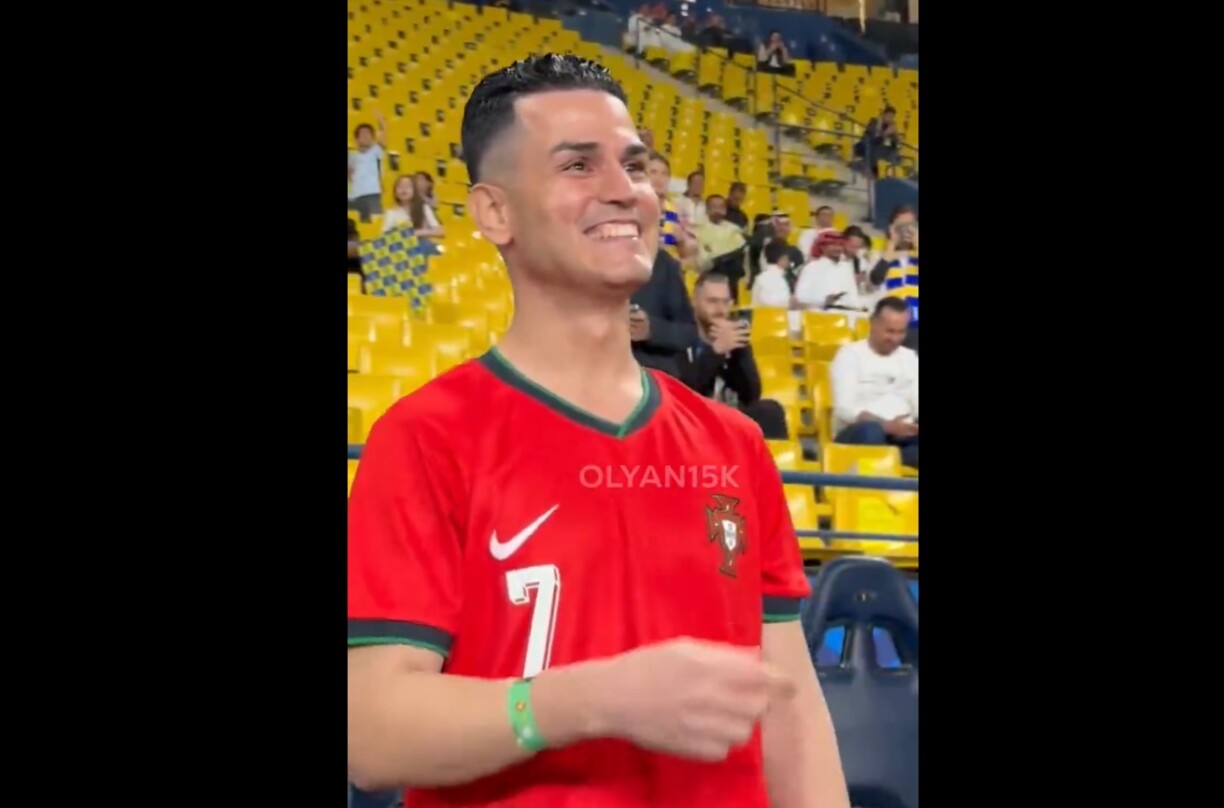 Durant l’échauffement avant son match avec Al-Nasser, Cristiano Ronaldo a été interpellé par un fan au physique particulier.