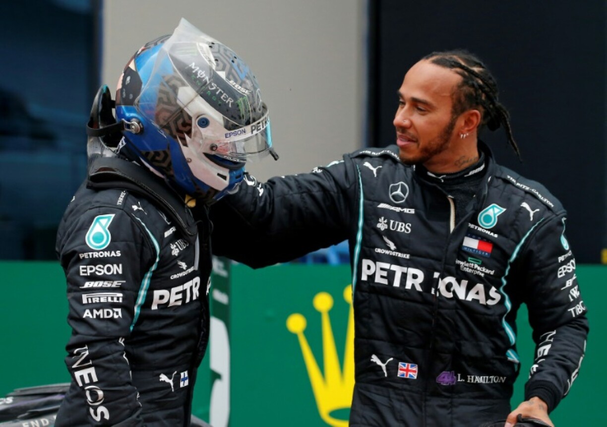 Il est accompagné sur le podium par le Mexicain Sergio Pérez (Racing Point) et l’Allemand Sebastian Vettel (Ferrari), qui monte sur la boîte pour la première fois au cours d’une saison 2020 compliquée.