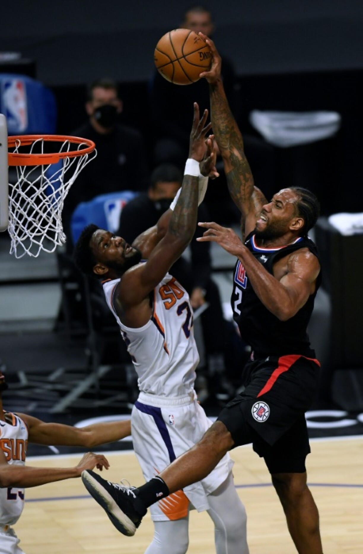Utah consolide d’autant mieux sa domination que Phoenix a cédé chez les Clippers (113-103), au terme d’un duel physique où les coups n’ont pas manqué, à l’image de Patrick Beverley, exclu après avoir joué du coude sur Chris Paul, ou de Devin Booker (24 pts) qui a heurté la gorge de Kawhi Leonard avec son avant-bras.