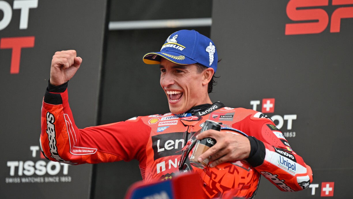 Le double champion du monde transalpin, coéquipier de Marc Marquez, connaît un week-end catastrophique puisqu’après avoir manqué la qualification en Q2 vendredi, il n’a réalisé que le cinquième temps de la Q1 samedi et débutera seulement au 15e rang du sprint et du GP, son plus mauvais résultat depuis le GP du Portugal en avril 2022.