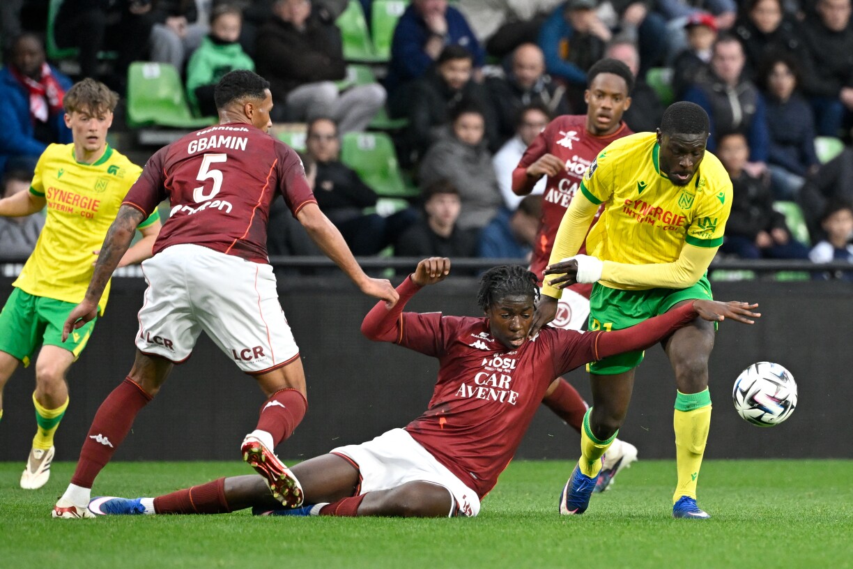 Nantes aussi est coincé, mais tout en bas du classement (17e, 18 points), où les matches du multiplex étaient cruciaux. Les Canaris ont dû batailler pour préserver le nul contre la lanterne rouge Metz (15 points), après l’exclusion de Tylel Tati avant la mi-temps (39e).