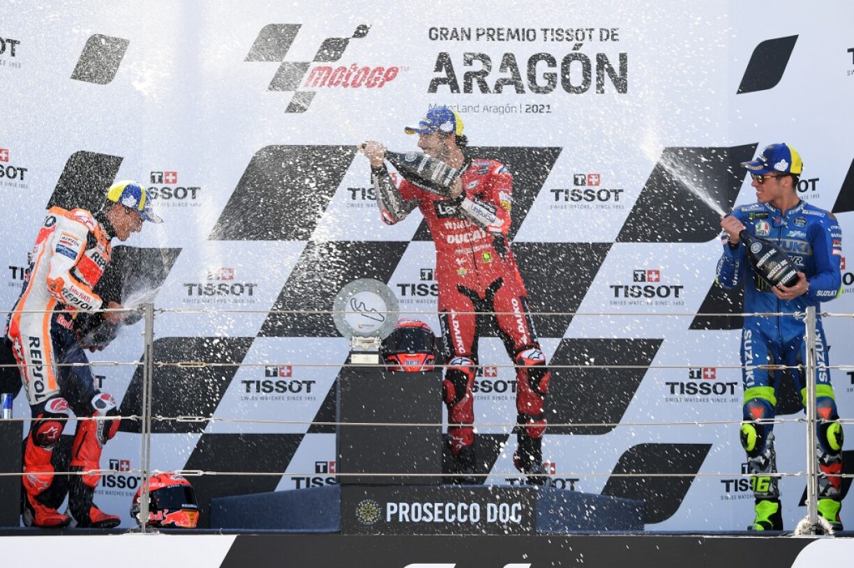“C‘est beaucoup d’émotion. On a travaillé très dur pour arriver à ce résultat. Cette victoire aujourd’hui est comme une libération”, a souligné “Pecco” Bagnaia.