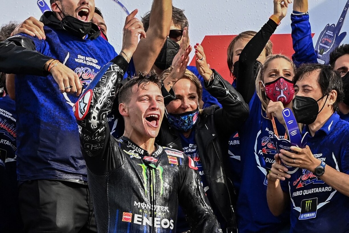 Quinzième sur la grille de départ du Grand Prix d’Emilie-Romagne à Misano (Italie), Quartararo a réalisé une impressionnante remontée jusqu’à la 4e place. Il a surtout profité de la chute de son dernier rival pour le titre, l’Italien Francesco “Pecco” Bagnaia (Ducati), parti à la faute à quatre tours de l’arrivée alors qu’il était en tête.