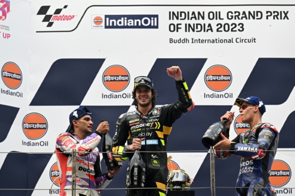 Parti en pole position, Bezzecchi a pris la tête grâce à un bon départ dès le premier tour pour ne plus jamais la lâcher. Le Transalpin, frustré samedi après avoir terminé cinquième du sprint en raison d’un accrochage avec son coéquipier et compatriote Luca Marini, a pris sa revanche pour décrocher le premier GP d’Inde de l’histoire dans la catégorie reine.