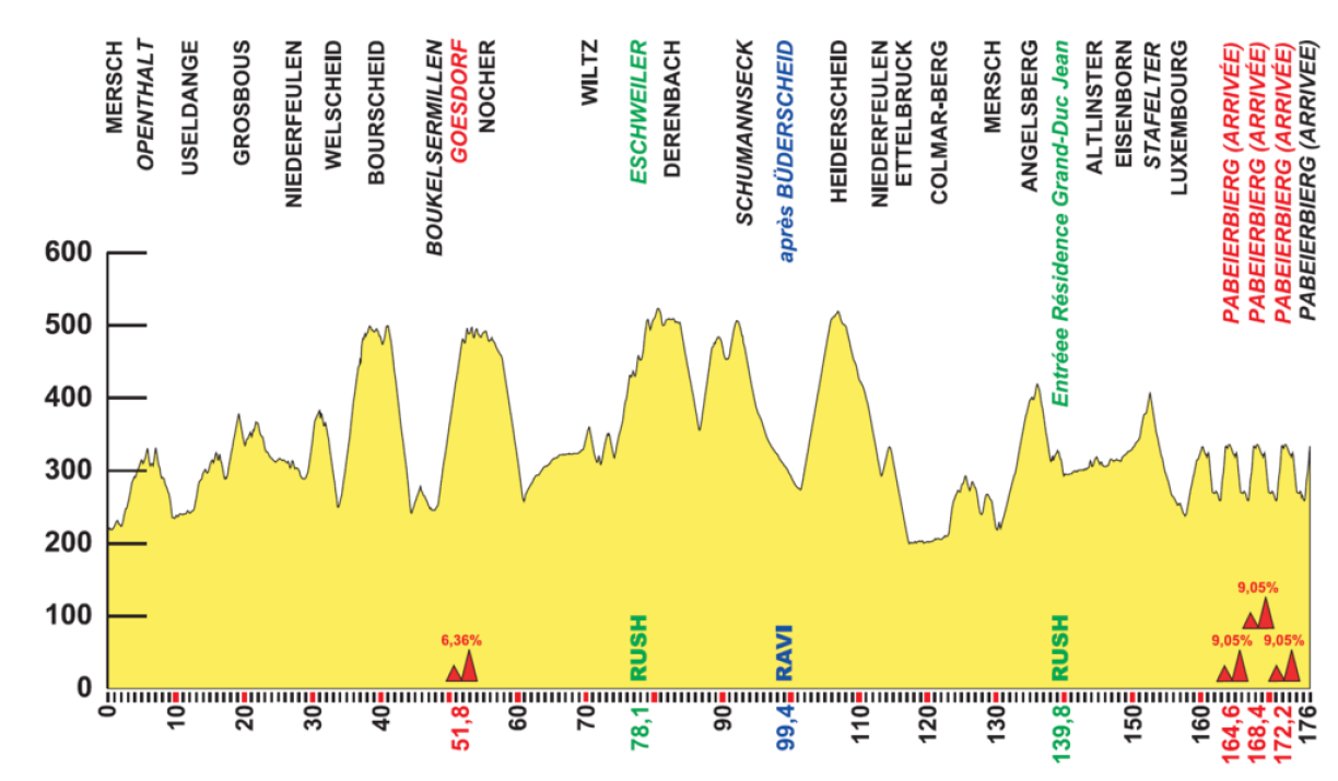 La quatrième étape s’étendait sur 176 kilomètres entre Mersch et Luxembourg-Ville. Une échappée de huit coureurs s’est détachée vers le 50e kilomètre mais elle n’a jamais excédé les trois minutes d’avance, ce qui a permis au peloton de garder le contrôle de la course.