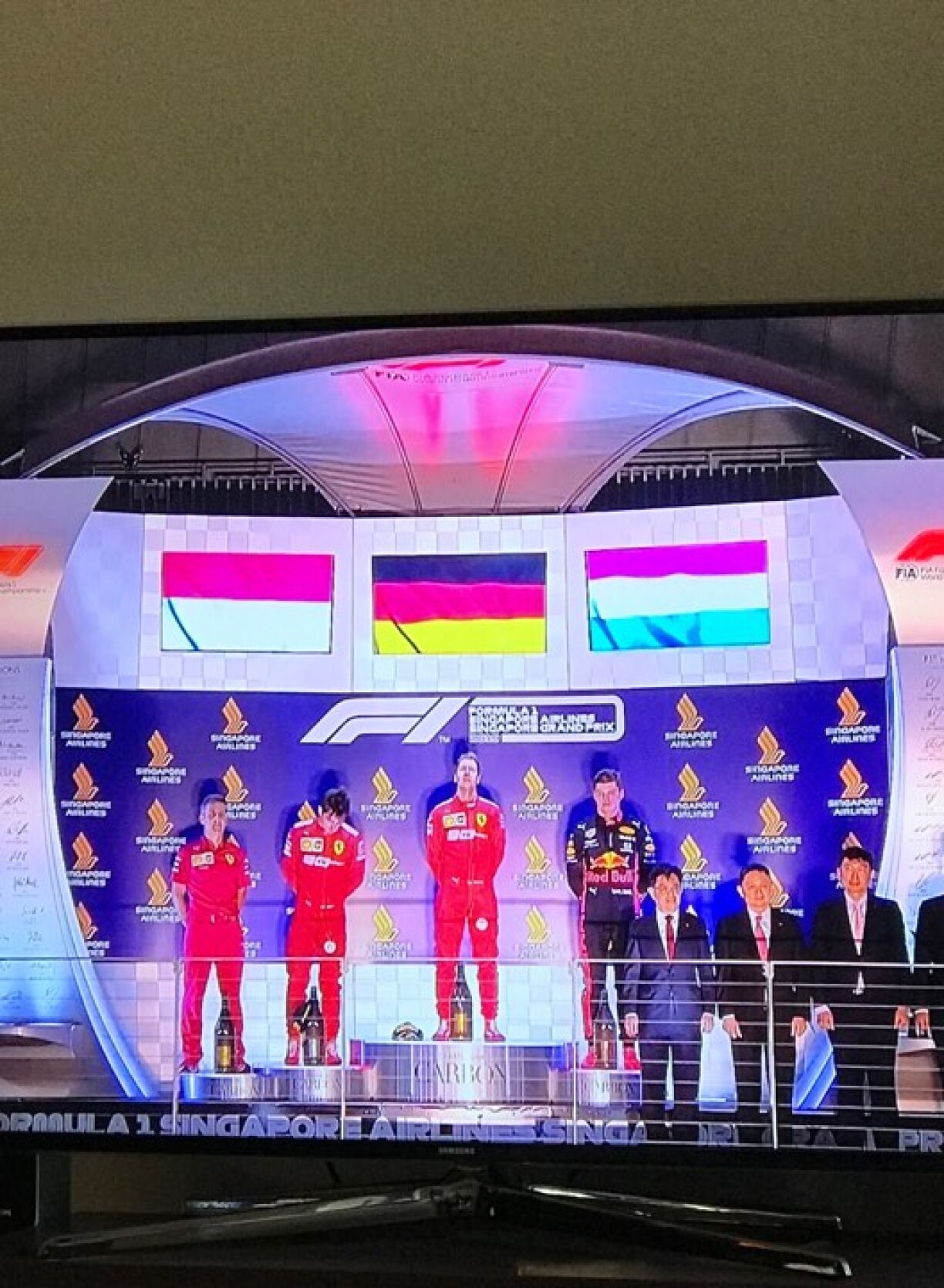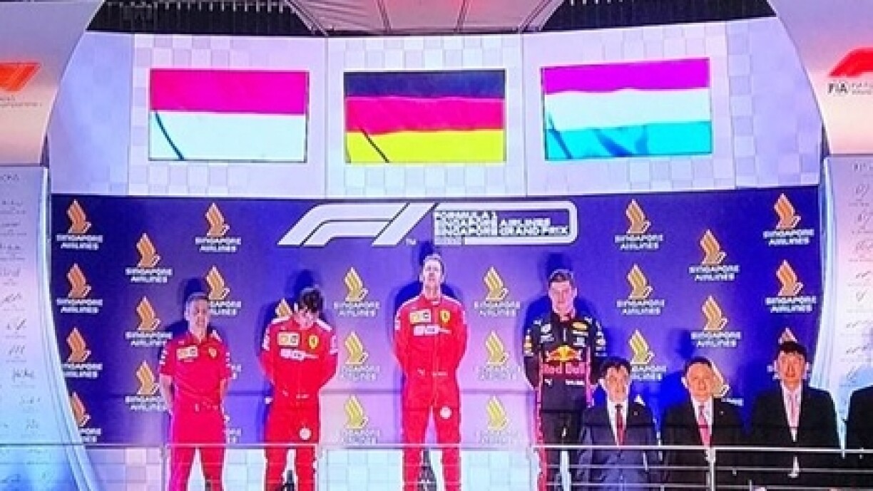Les organisateurs se seraient-ils trompés de drapeau dimanche alors que Verstappen montait sur le podium? C’est ce que semble indiquer cette photo qui nous a été envoyée par un de nos lecteurs dimanche.