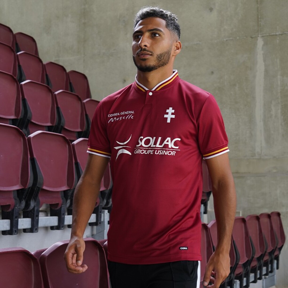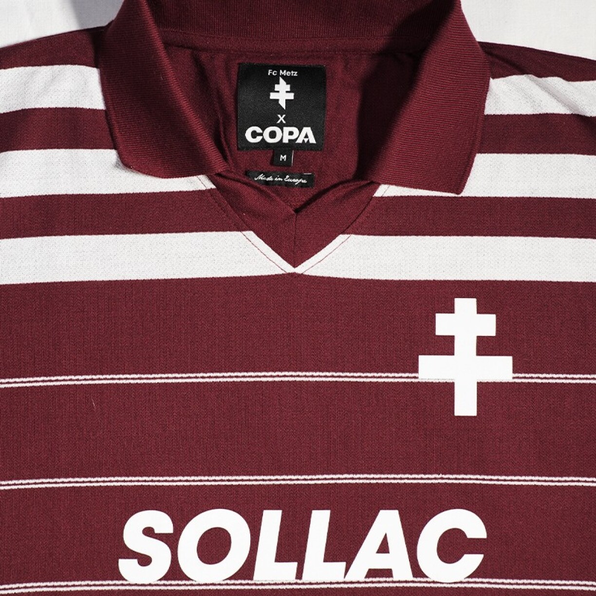 Ce maillot “aux fameuses bandes blanches, floqué du sponsor “Sollac”, dixit le FC Metz, “fera revivre ce match historique, à jamais gravé dans les cœurs messins.”