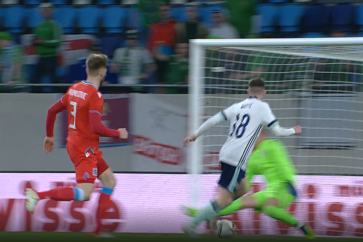 Dommage car les hommes de Luc Holtz avaient bien réagi après l’ouverture du score signé Magennis dès la 16e minute. Les errements défensifs du Luxembourg étaient alors résumés sur cette action qui a mis aux prises l’attaquant nord-irlandais et Maxime Chanot, écarté d’un bon coup d’épaule. Seul sur le côté droit, Magennis s’est alors avancé au coeur d’une défense statique pour ouvrir la marque dans un angle fermé (0-1).