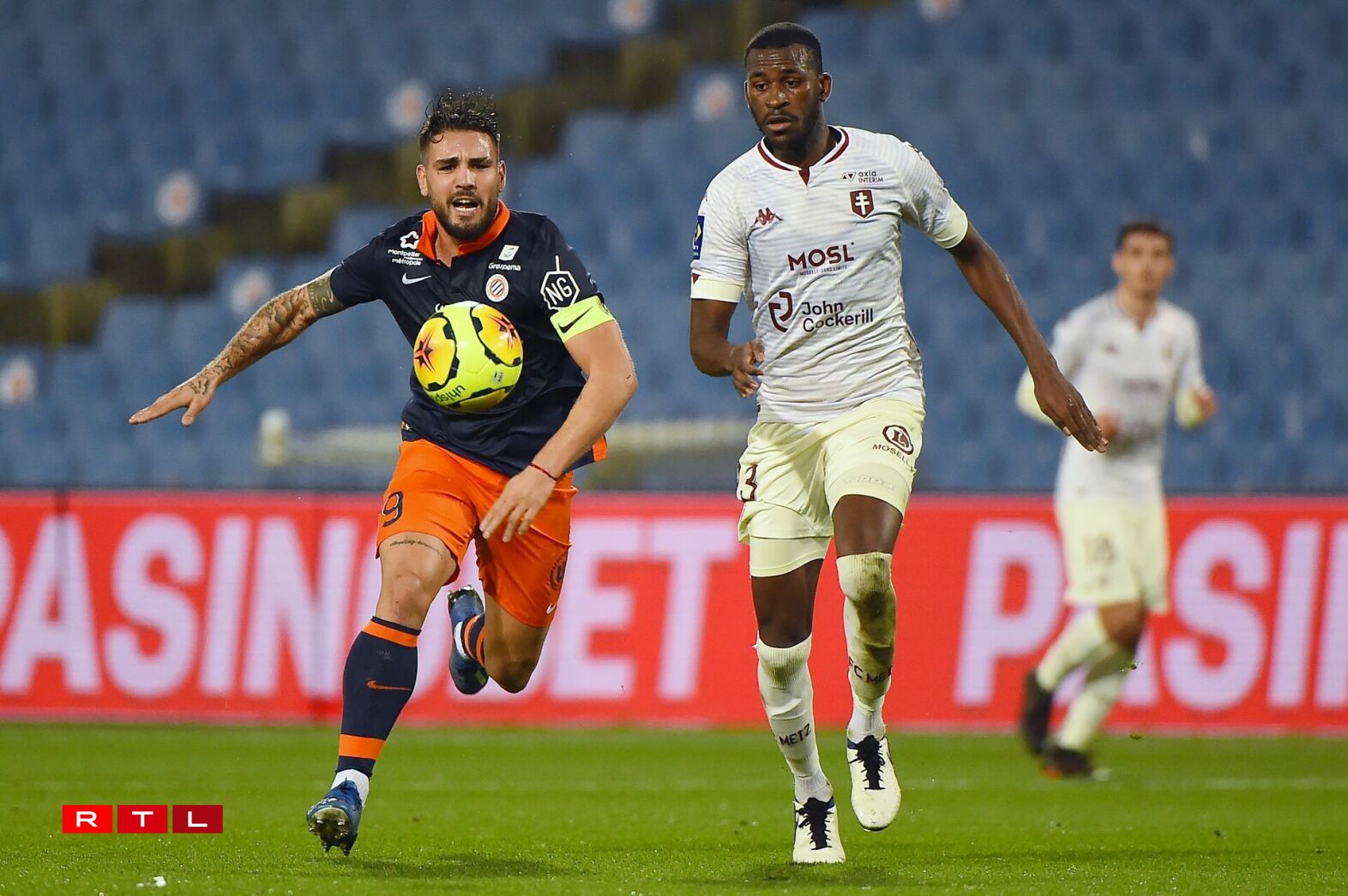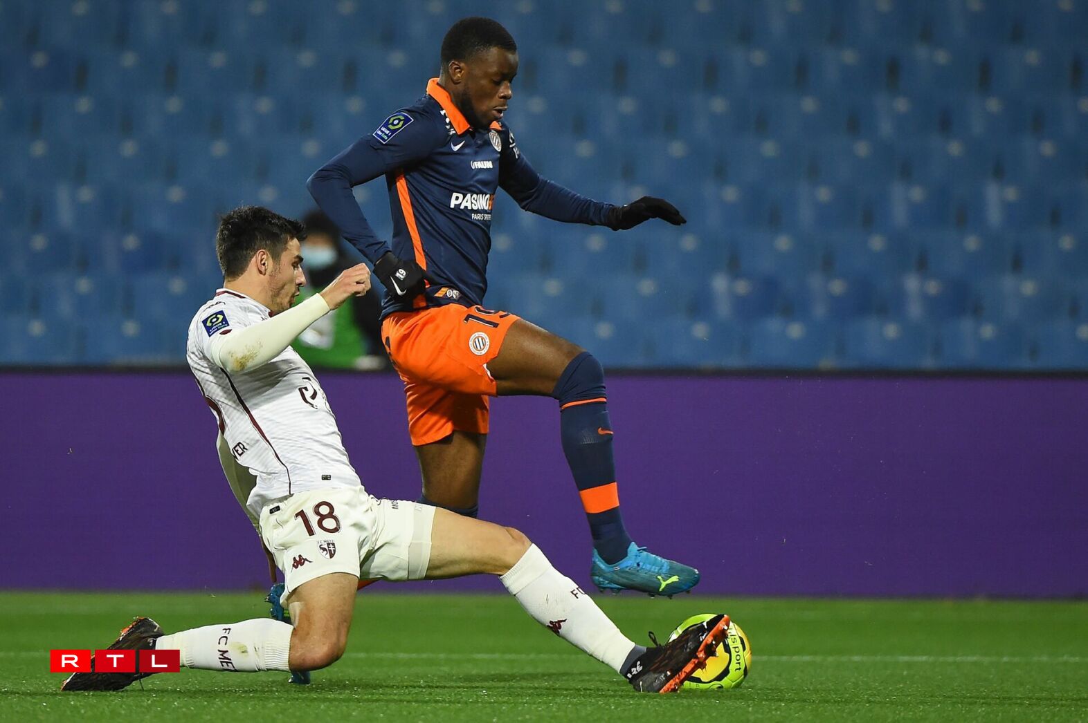 Metz, qui s’est appuyé ce mercredi soir sur une défense à cinq (avec Bronn, Boye et Kouyaté dans l’axe), s’en est alors remis à Thomas Delaine. Le latéral, qui retrouve du temps de jeu ces dernières semaines, s’est distingué deux fois. De manière très positive d’abord, avec une énorme frappe de 30 mètres que le gardien montpelliérain a finalement bien capté, en s’y reprenant deux fois (27e). Puis avec moins de réussite juste avant la mi-temps, lorsqu’il a manqué son contrôle puis son tir, qui a fini dans le petit filet d’Omlin (44e).