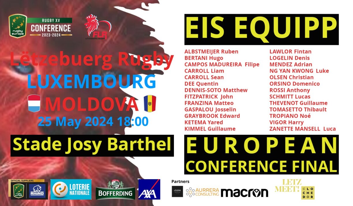 Après une saison impressionnante où il a terminé premier de la Conférence B de Rugby Europe, le Luxembourg affronte désormais le vainqueur de la Conférence C, la Moldavie, en finale des barrages pour déterminer qui atteindra le Rugby Trophy, une compétition de haut niveau qui comprend des équipes telles que la Pologne, Suède, République tchèque, Croatie et Lituanie.