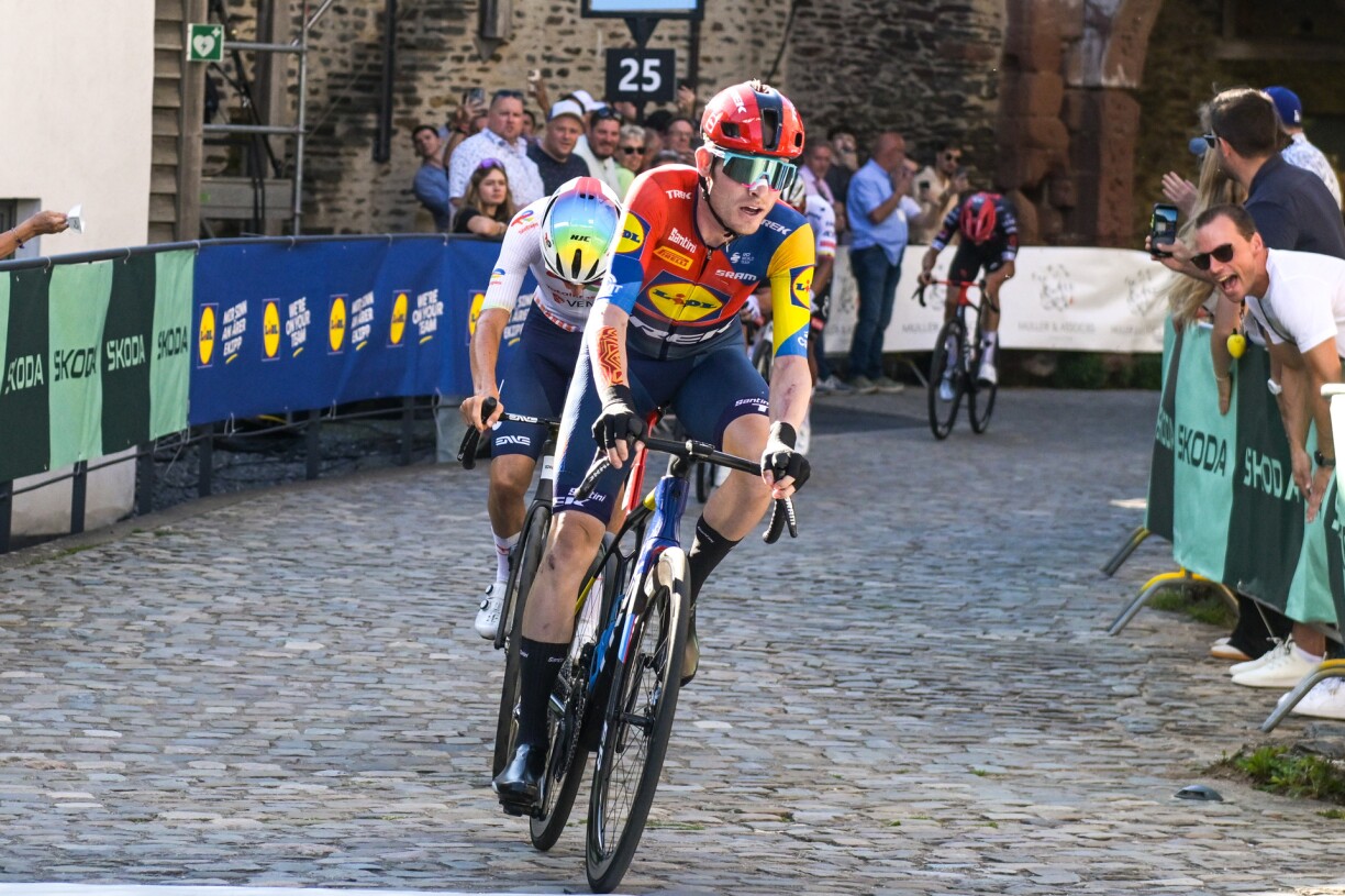 Son avance ne dépassa jamais les dix secondes et les derniers pavés de la redoutable montée finale eurent raison de son abnégation. Matias Skejlmose, habitué du Tour de Luxembourg qu’il remporta en 2022, lança les hostilités, suivi comme son ombre par le Français Jorgan Jegat. Le dixième du dernier Tour de France ne parvint jamais à remonter à hauteur du pédalier du Danois qui s’offrait une troisième victoire cette saison après, notamment l’Amstel Gold Race.