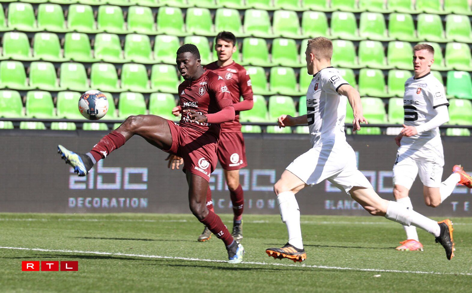Face à Rennes, les Grenats ont subi lors de la première période. Illustration dès la 18e minute, avec cette intervention manquée de Kouyaté, qui revenait en défense centrale après un match de suspension, dont Terrier a profité. L’attaquant a joué juste en centrant en retrait pour Doku, qui n’a eu aucun mal à tromper Caillard (0-1, 18e). Comme face à Lens, Angers et Bordeaux, les Messins se sont retrouvés à courir après le score.