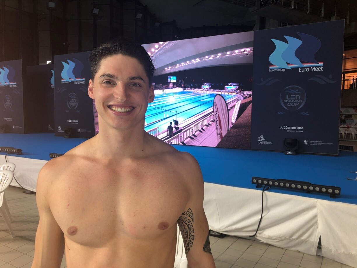Julien Henx pulvérise son propre record et établit un nouveau record national en 50 mètres crawl dans le cadre de la finale B de l’Euro Meet samedi après-midi. Il se classe en deuxième position à 22.69 secondes et améliore son propre record de 2 centièmes.
