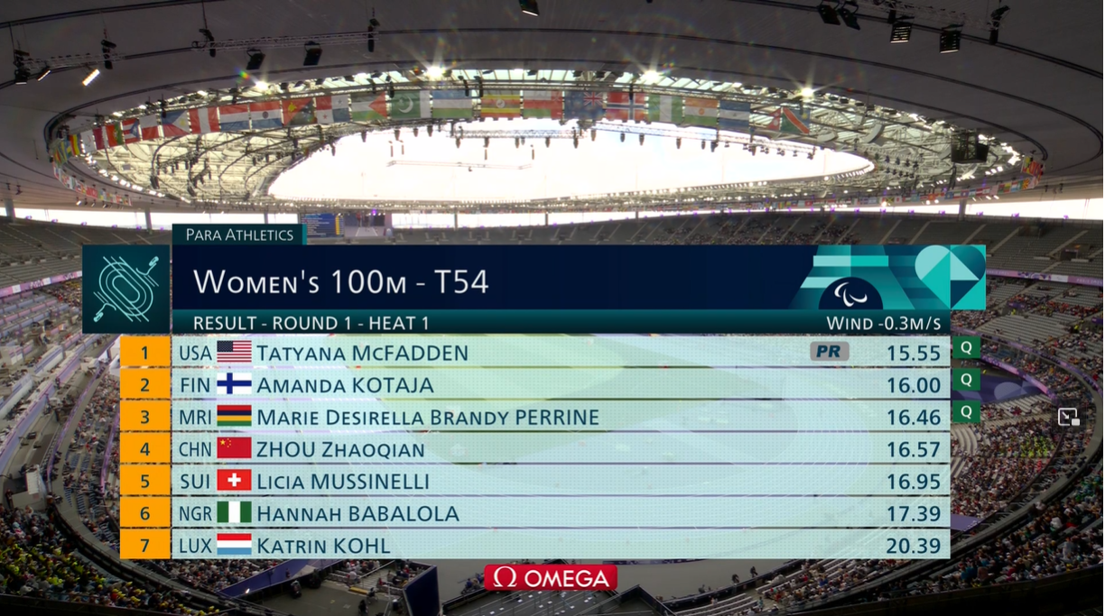 La championne en titre a elle terminé 4e de la série, en 16'’57. C’est l’Américaine Tatyana McFadden qui a franchi la ligne d’arrivée en première, en 15'’55.