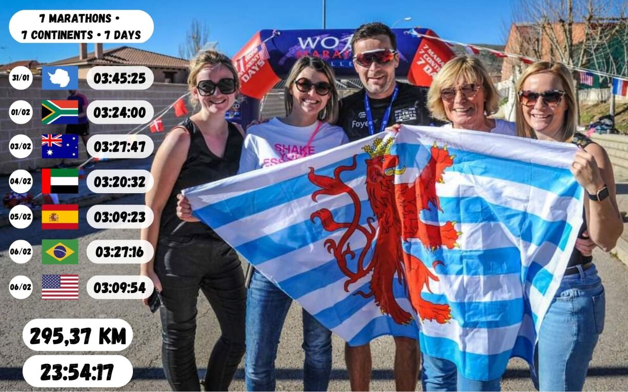 Une sacrée performance pour celui qui s’est préparé pendant plus d’un an à ce défi hors-norme qu’est le World Challenge Marathon. «J’ai simulé trois marathons en trois jours, j’ai couru 30 km par jour pendant sept jours et les trois derniers mois ont ressemblé à la préparation d’un marathon normal avec une centaine de kilomètres par semaine.» C’est dire si la campagne et les bois du pays n’ont plus le moindre secret pour lui.