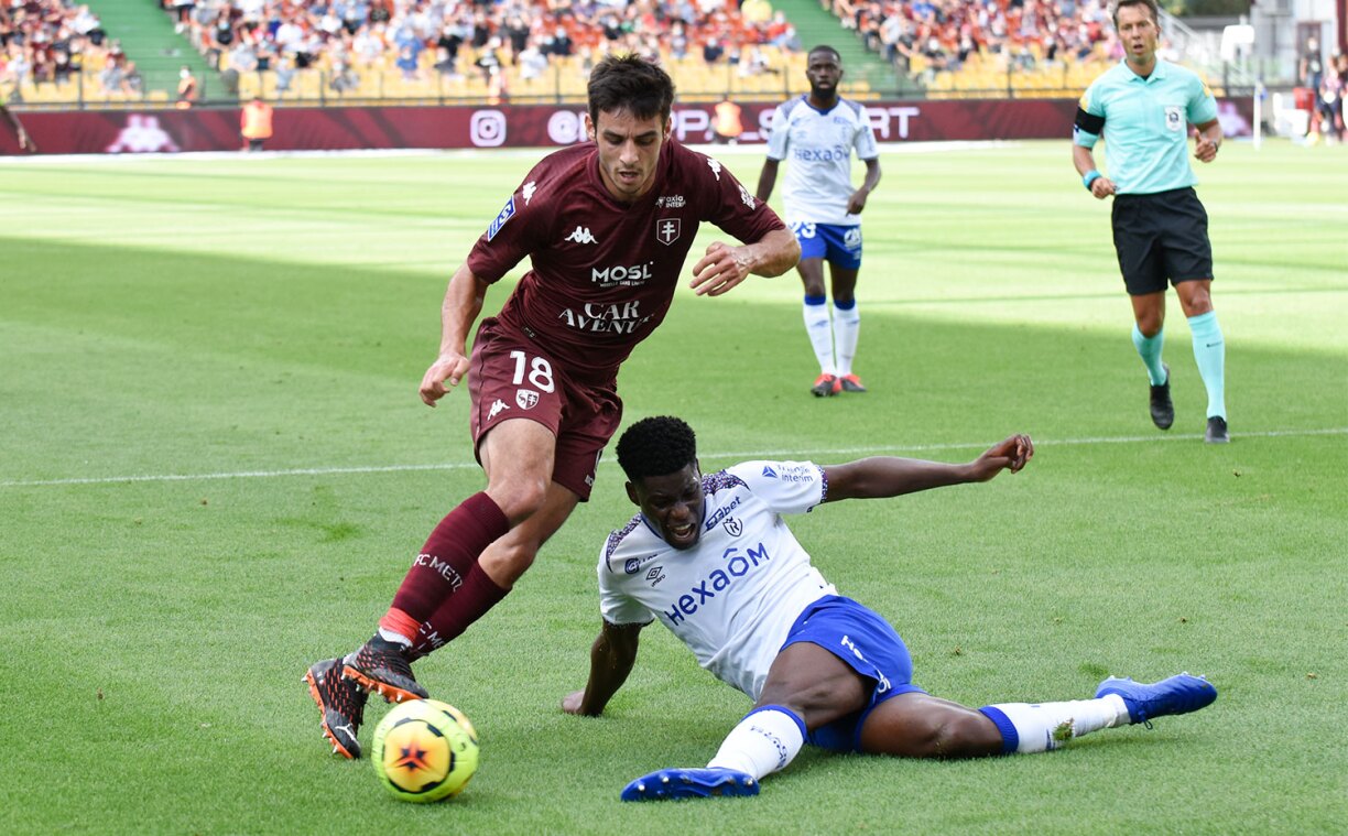 Emmené par ses individualités, le FC Metz a réussi à ouvrir le score au bout de 18 minutes de jeu. Le premier but de la saison pour les Grenats qui ont marqué alors même que le Stade de Reims faisait monter la pression. Le but est tombé sur coup-franc: Boulaya a envoyé un beau centre qui a été repris aux six mètres par Niane (1-0, 18e).