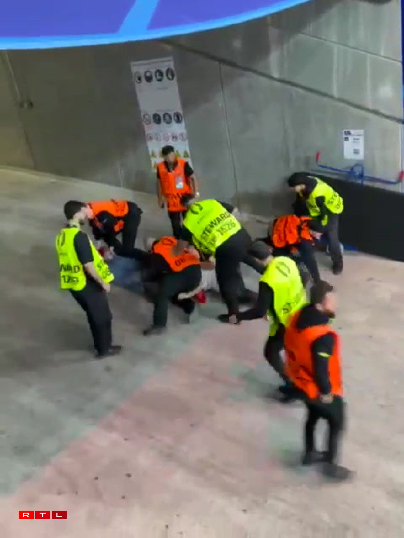 Sur ces images, on voit un spectateur qui voulait courir sur le terrain, se faire tabasser et piétiner par des stadiers. La police et l’UEFA ont d’ores et déjà réagi. Elles connaissaient la vidéo. La police a ouvert une enquête. Quant à l’UEFA, elle a déclaré condamner tout comportement violent. Elle ne souhaite pas faire davantage de commentaires avant la fin de l’enquête.