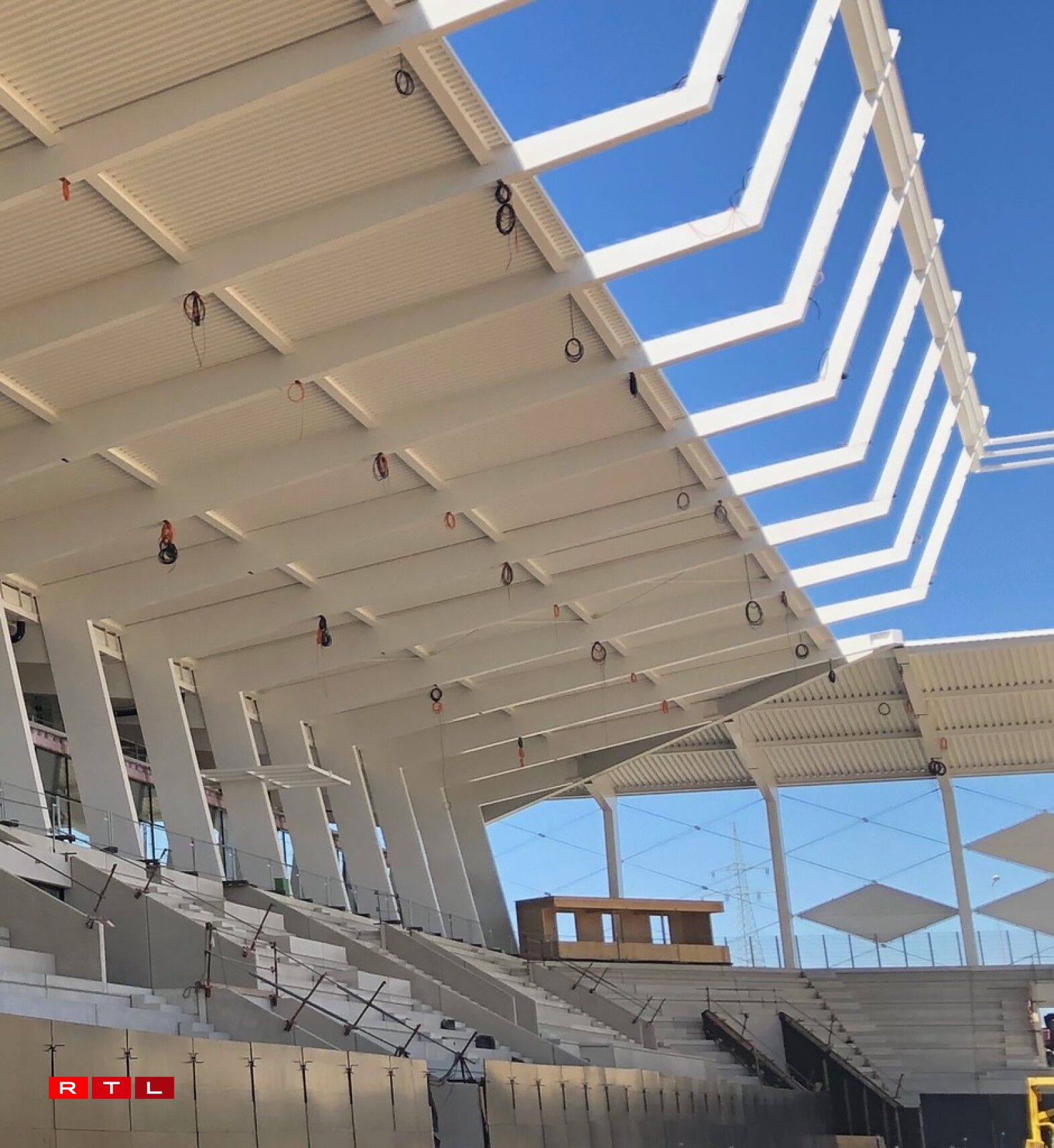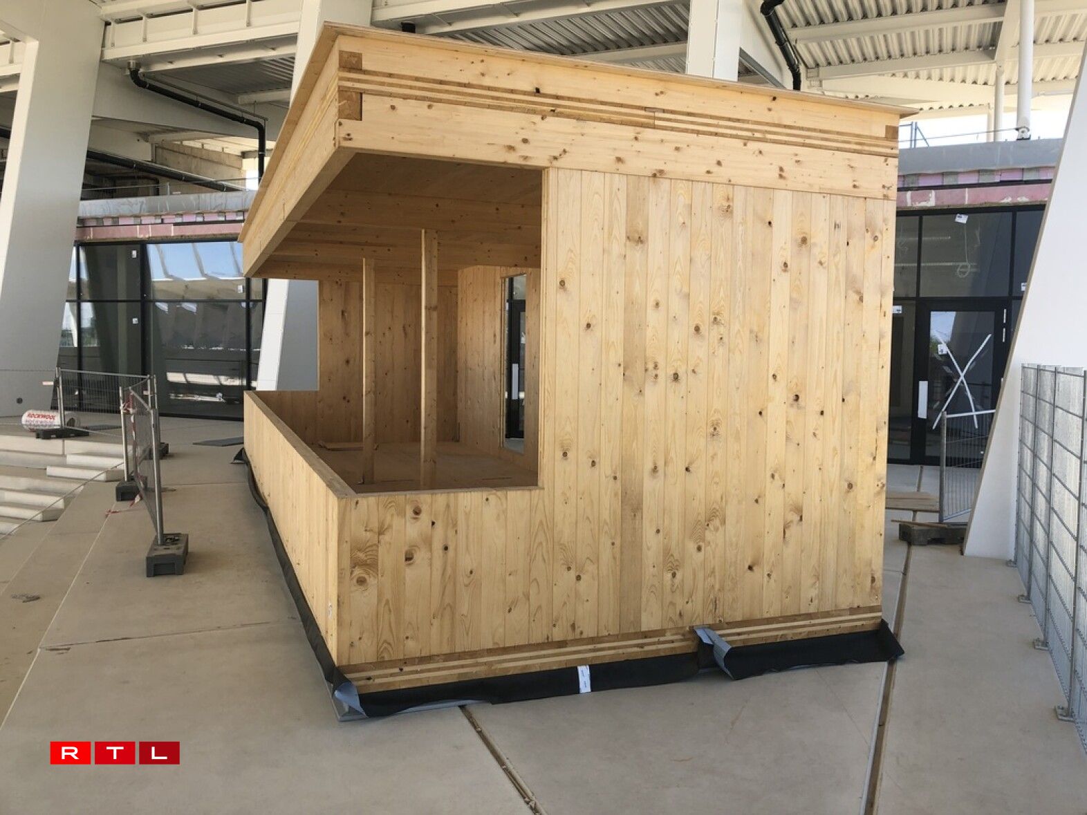 Le premier et plus évident d’entre eux est cette étonnante cabane en bois installée dans un des angles du stade. Elle devrait accueillir le speaker... Dont la cabine aurait été simplement oubliée lors de la conception de l’enceinte.