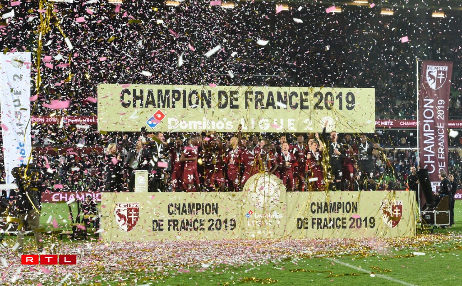 L’ambiance était bien plus festive ce vendredi soir à Saint-Symphorien, une semaine après un derby lorrain sous haute tension dont l’issue favorable à l’AS Nancy Lorraine (1-0) n’avait eu de conséquences “que” sur la fierté messine. Car les hommes de Vincent Hognon étaient déjà champions de Ligue 2: un titre et un retour dans l’élite qu’il convenait de célébrer comme il se doit dans une enceinte amener à évoluer dès le lendemain de ce dernier match de la saison.