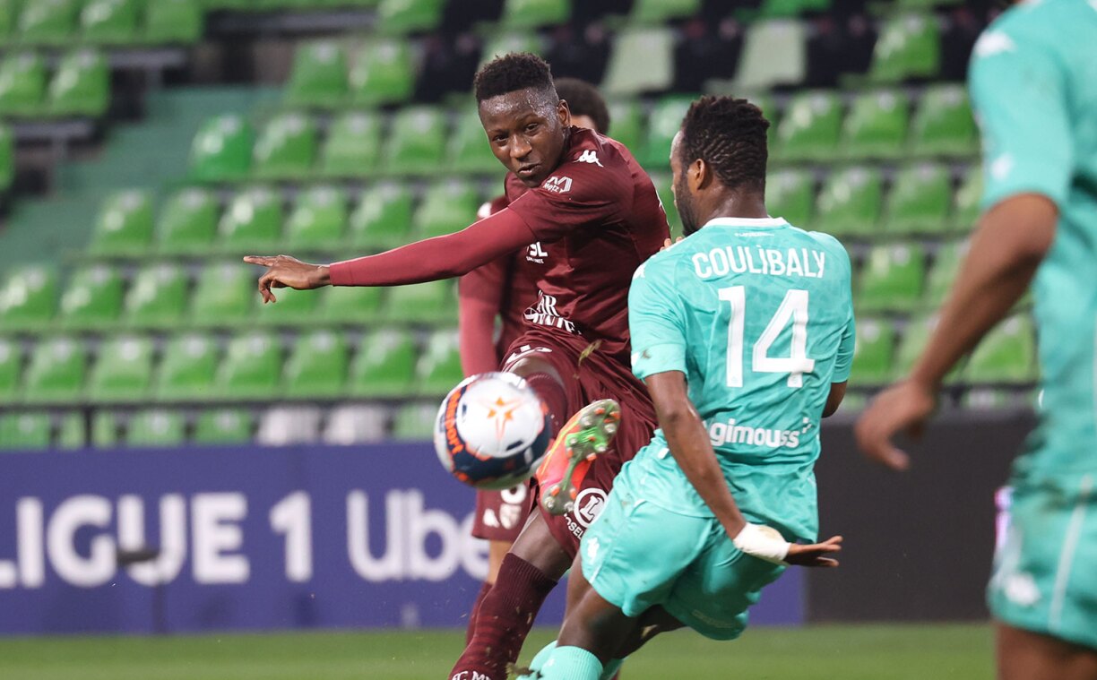 Le match a basculé en fin de première période avec une faute de Kouyaté sur Diony dans la surface des Grenats: en position de dernier défenseur, le premier s’est fendu d’un tacle coupable alors qu’Oukidja est sorti de ses buts les deux pieds en avant. Fulgini, qui avait lancé son attaquant face au but lorrain, s’est chargé de convertir le penalty en prenant Oukidja à contre-pied (0-1, 43e).