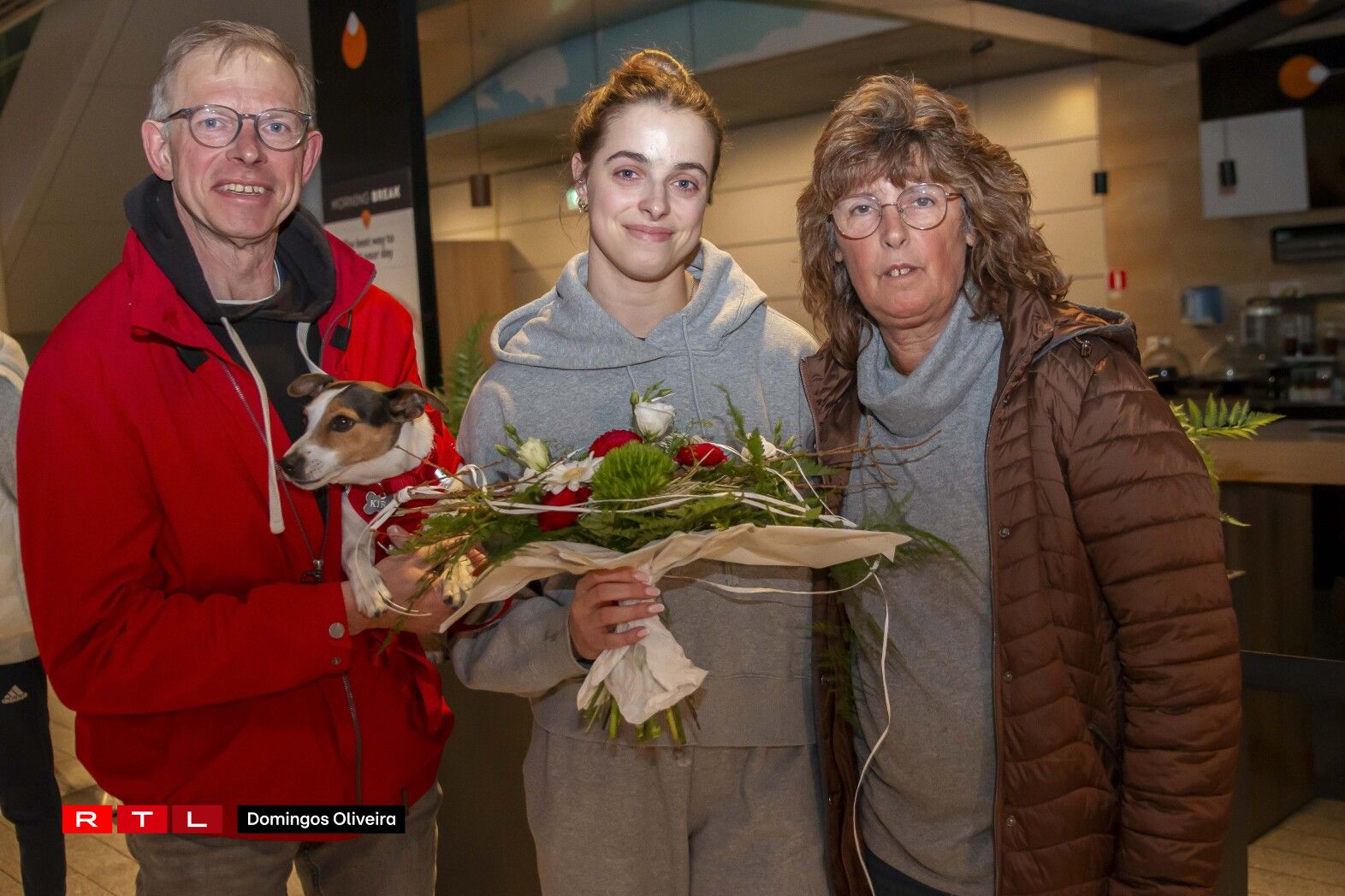 L’arrivée au Findel, où la sprinteuse était attendue par ses parents, a été émouvante. Ce fut aussi un moment plein de joie et de soulagement, non seulement à cause de ses exploits sportifs, mais également à cause du voyage de retour de 22 heures, au cours duquel la jeune femme a à peine dormi. Elle était donc fatiguée et n’avait pratiquement pas encore eu l’occasion de s’occuper des nombreux messages et félicitations reçus via différents canaux. Interrogée par RTL, elle a toutefois confirmé que le message de l’équipe nationale de football lui était bien parvenu et l’en a remercié.