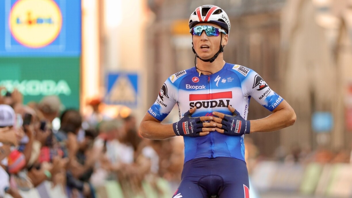 Le petit grimpeur de la Soudal - Quick Step, dans son style inimitable, la tête dodelinant et les épaules oscillant de gauche à droite et de droite à gauche, plaçait une dernière accélération dans la montée finale pour franchir la ligne seul avec une avance de 18’’ sur le Transalpin et de 41’’ sur le premier groupe réglé par Mathieu van der Poel. Plusieurs minutes après la course, on apprenait la disqualification du coureur italien en raison d’une position non conforme sur le vélo dans une descente.