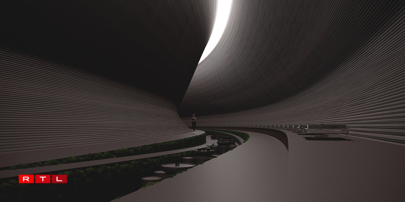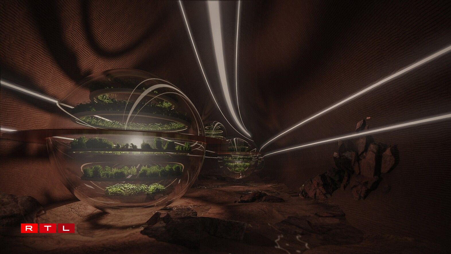 Les intérieurs sont conçus pour mélanger l’esthétique de la Terre et de Mars avec des meubles en forme de roche. Une grande salle remplie de plantes s’étendra sur la longueur de la structure en forme d’anneau reliant différentes parties de la colonie.