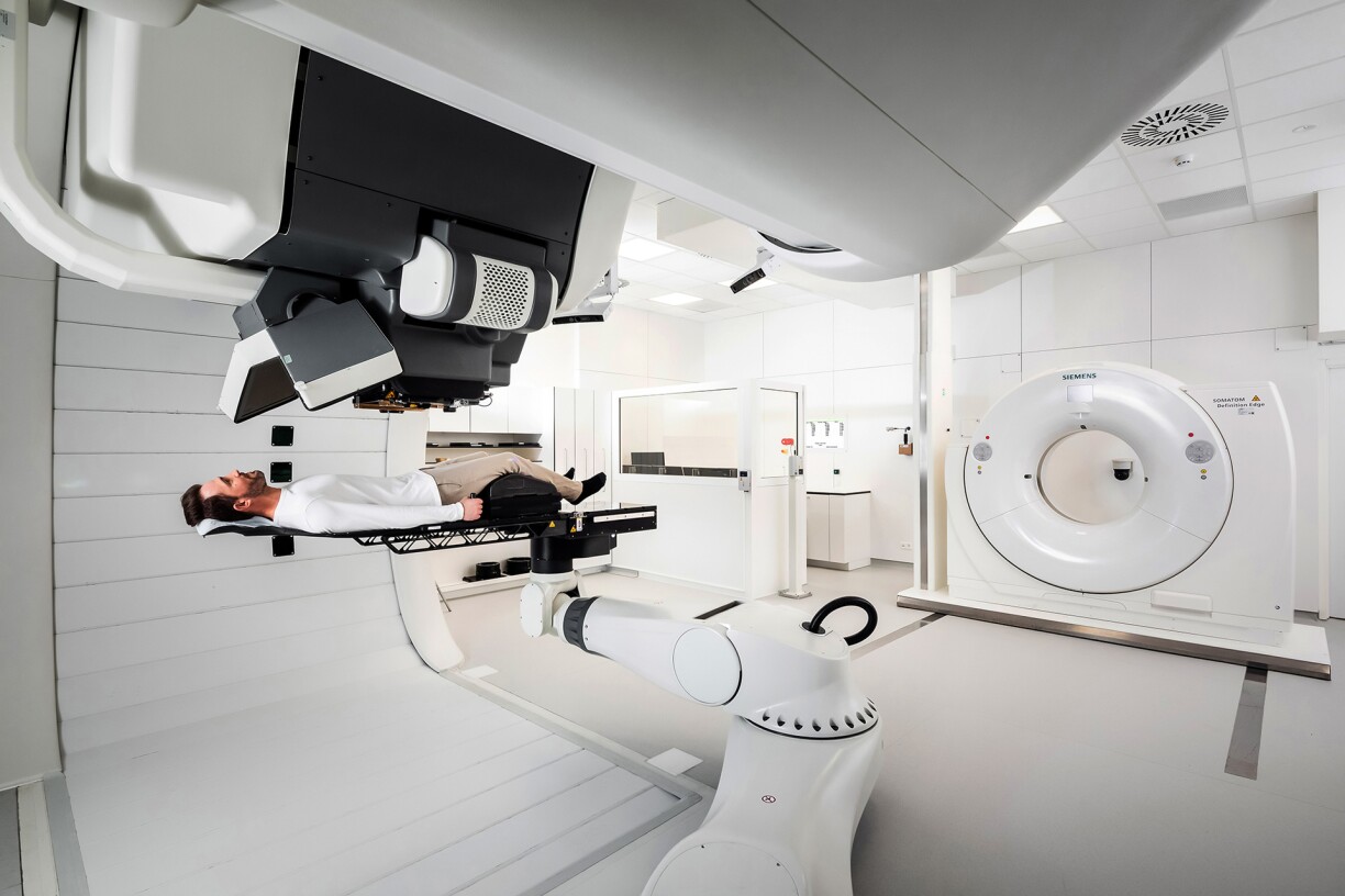 La protonthérapie est une technique d’irradiation utilisant des faisceaux de protons accélérés qui offrent une balistique plus favorable en raison de leur parcours limité dans le corps, en comparaison avec les photons Rx utilisés dans la radiothérapie conventionnelle. Cette technique permet ainsi d’épargner un volume substantiel de tissus sains dans le traitement de certaines pathologies (mélanomes oculaires, chordomes/chondrosarcomes du système nerveux central, tumeurs pédiatriques, etc.).