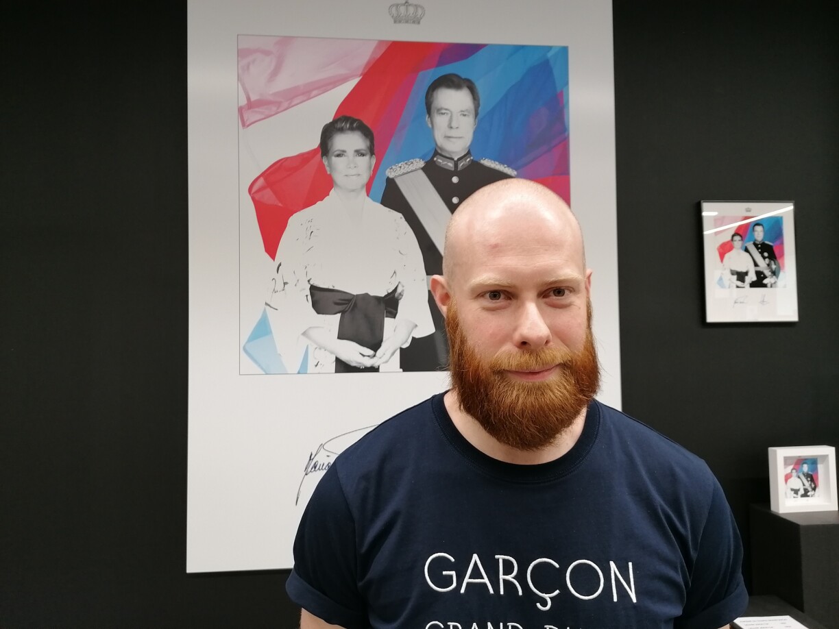 T-shirts, toiles, photos retouchées… les différentes créations de Jacques Schneider sont actuellement disponibles dans une boutique du centre commercial de la Cloche d’Or à Gasperich. Un immense tirage photographique rehaussé de couleur du couple grand-ducal accueille les acheteurs.