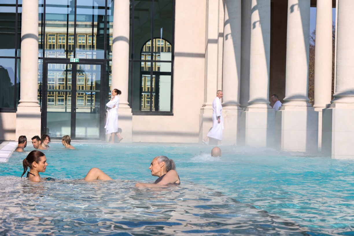 Ensuite, le 15 avril, le Spa thermal, autour de la piscine ronde historique rénovée, sera accessible, composé d’un espace bien-être et d’un espace Wellness, le tout entièrement alimenté en eau thermale.